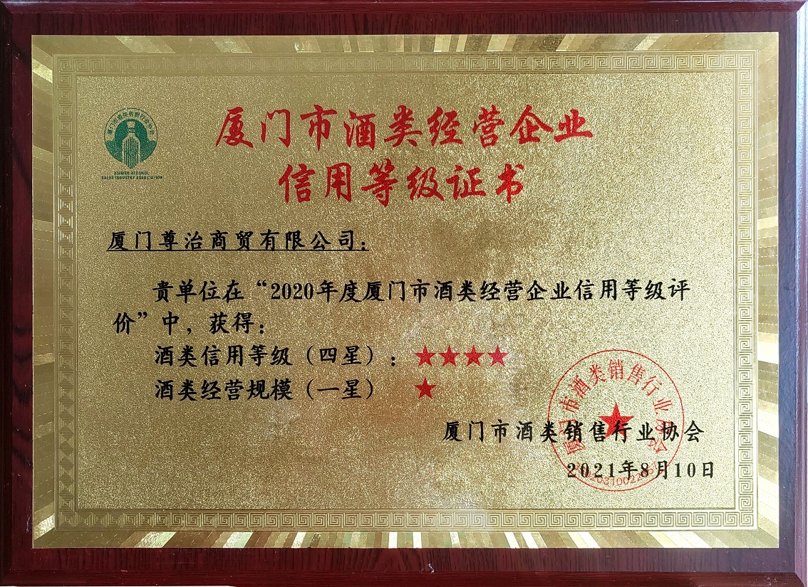 厦门尊治商贸公司在2020年度厦门市酒类经营企业信用等级评价中,