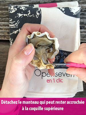 切断肉柱,然后摆开蚝壳。