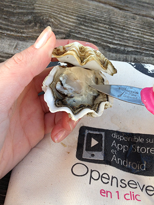 ④先找缝,然后将蚝刀插入蚝壳缝中间,